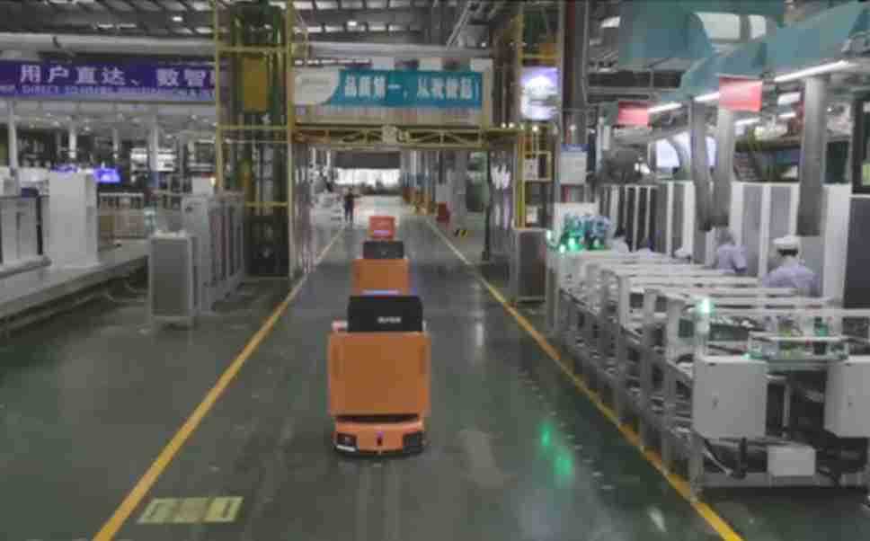 为车载冰箱物流配送打造的智能解决方案,,,包含产中物流通过潜伏举升AMR搬运至线边,,,产后成品物流智能仓储,,流程包含产中物流智能齐套入库,,,线边安灯叫料AMR智能配送至线边,,,成品入库、、、出库,,,,通过无人堆高车机器人,,,,智能仓储管理替代人工作业管理,,,实现更高存储、、、更高效率、、、更具柔性化的解决方案。。。。